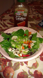 I eat salad all the time.. at least 4 days a week if not more... I crave spinach... I really do.I also crave not so healthy stuff, I have been hitting the fun size treats a little to hard. I really need to get better at just cleaning, peeling, cutting all my veggies and storing them in baggies to make throwing together a salad faster. It's my usual lunch and I try to eat a small salad with dinner as well. I eat out for lunch once or twice a week tops and only when I am on a time crunch and can't get home & back to court in time. Usually when I eat out I get a soup & salad as well. I shop weekly for fresh produce. My fav lettuce is the 50/50 mix, part spring mix and part spinach.